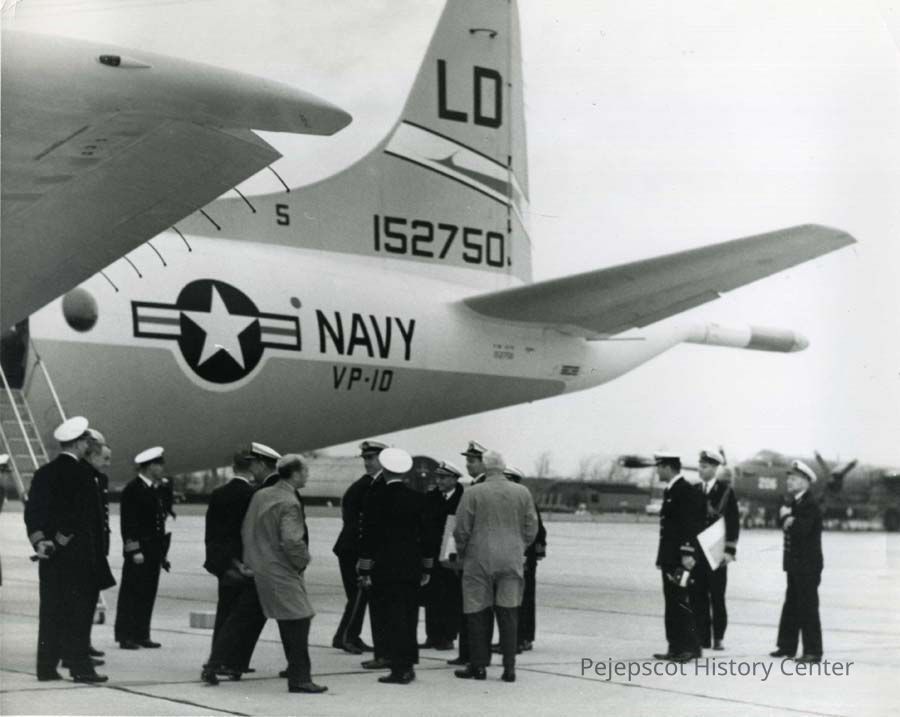 B/W photo of a VP-10 P3 at Brunswick Naval Air Station. 1967.