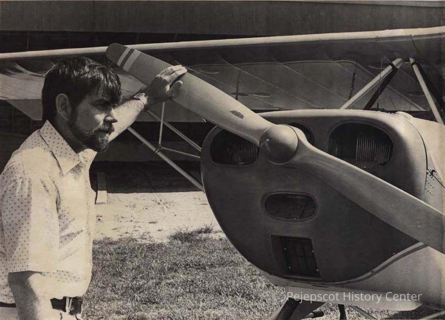 A black and white photo of W. L Taylor with an airplane was published in The Times Record in Brunswick, Maine, on 7/21/1981. It is similar to 2003.546.3.884.