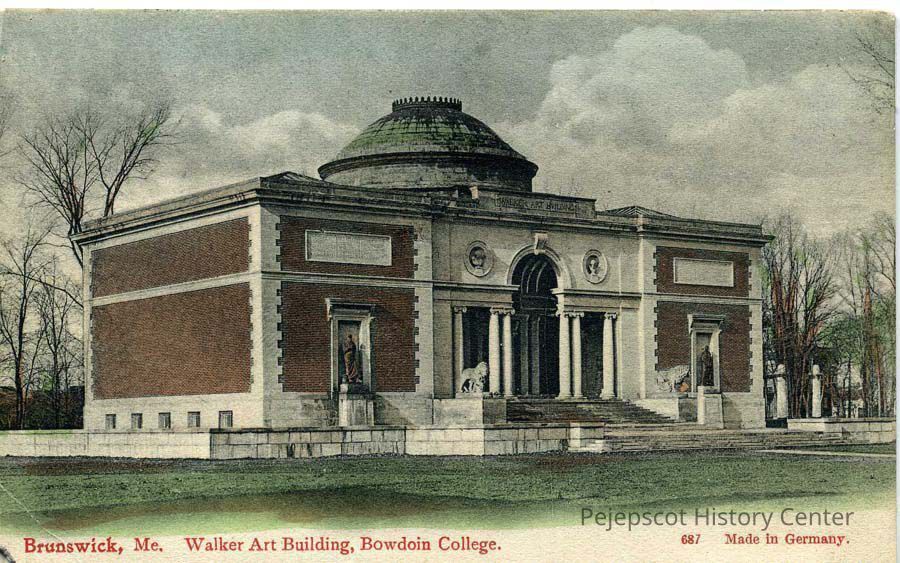 Colored photo postcard or Walker Art Building, Bowdoin College.