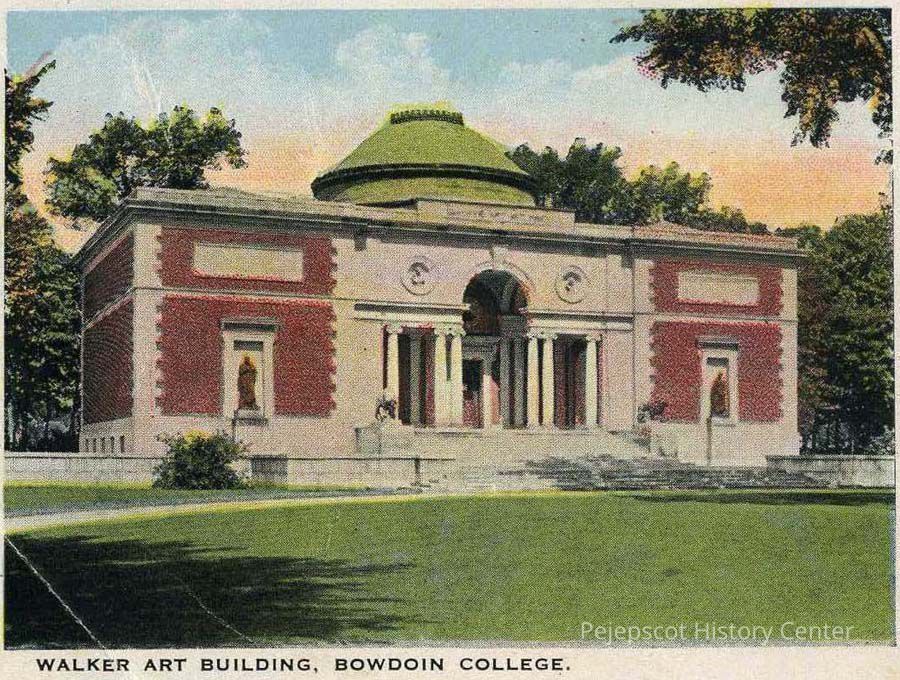 A color picture postcard view of the Walker Art Museum, Bowdoin College.
