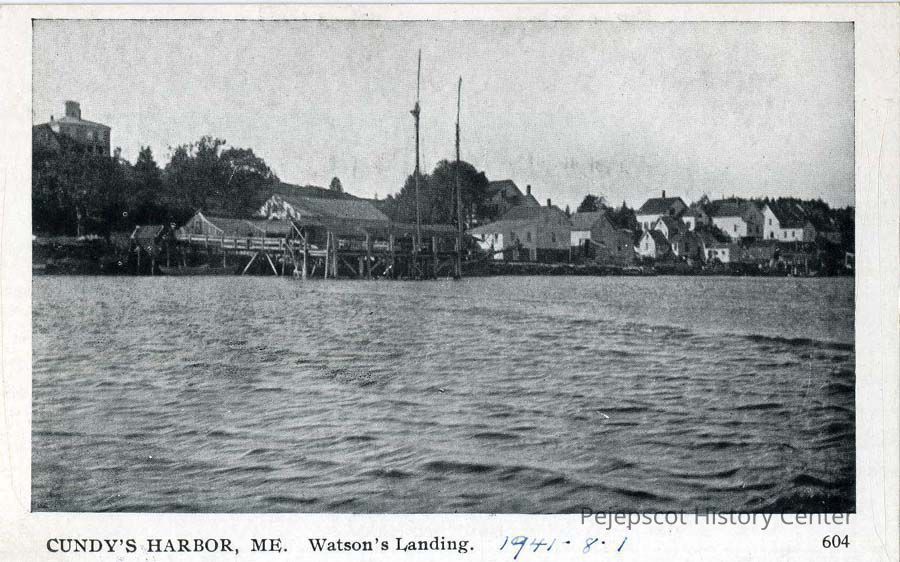 A black and white postcard of Waston's Landing in Cundy's Harbor, ME. Dated August 1, 1941.Lexicon