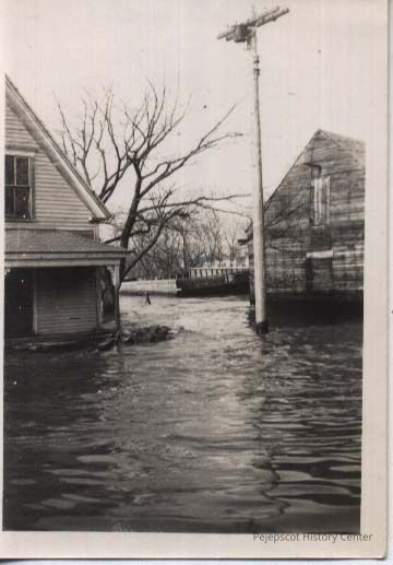 Photo of Water Street, Brunswick, Maine, during a flood.