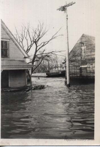 Photo of Water Street, Brunswick, Maine, during a flood.