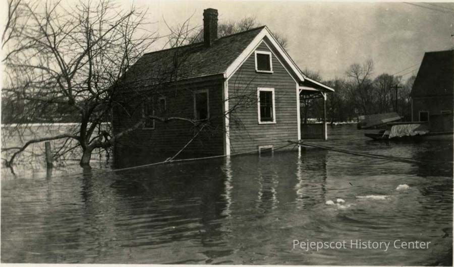 A B/W photograph of Water Street during the 1936 Flood. Undated