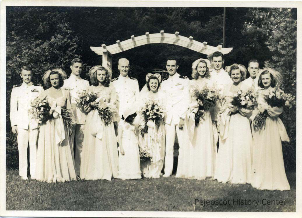 Wedding party and spouses at the backyard reception of the Jane Senter and Alan Lee wedding. 07/16/1945