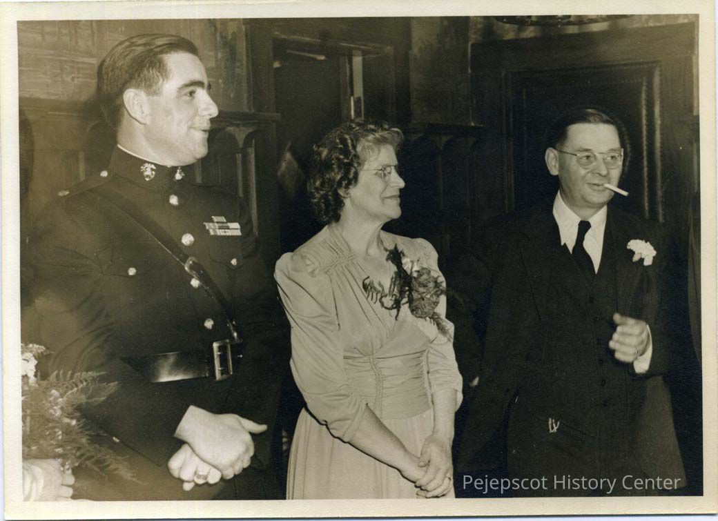 The bride's parents, Mr. and Mrs. Carl Martin, at the wedding reception of Marguerite H. Martin to John R. Chaisson of Swampscott, MA on February 22, 1946 at the Hotel Eagle.