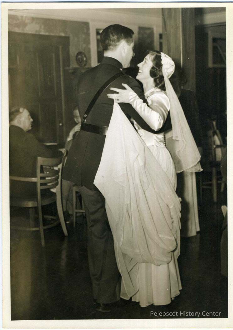 Bride and groom dancing at the wedding reception of John R. Chaisson and Marguerite H. Martin at the Hotel Eagle. 02/22/1946
