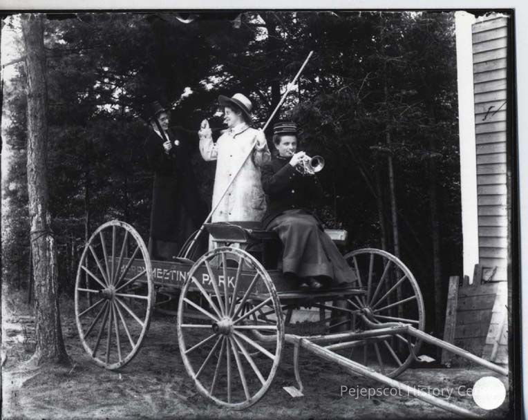 Photo of welcoming committee on service cart at Merrymeeting Park, Brunswick, Maine.