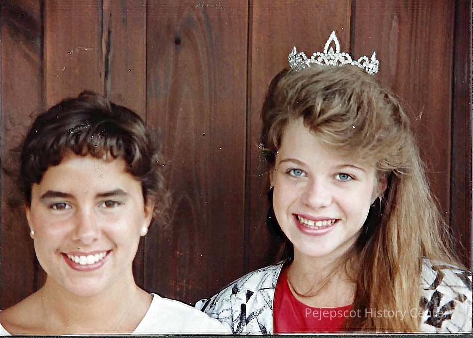 A color photograph of Wendy Mercier and Lisa Kelly after the Maine Egg Festival Pageant 7/22/1988.