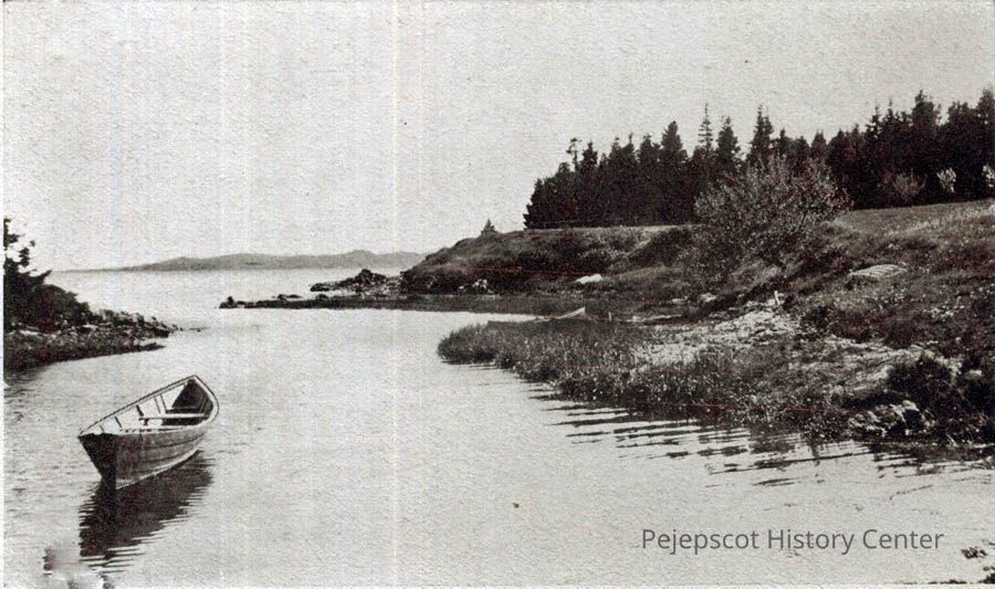 A B/W photo of West Harpswell, Maine Tide Mill Cove and Harpswell Harbor at Shore Acres looking towards Stover's Point.Lexicon