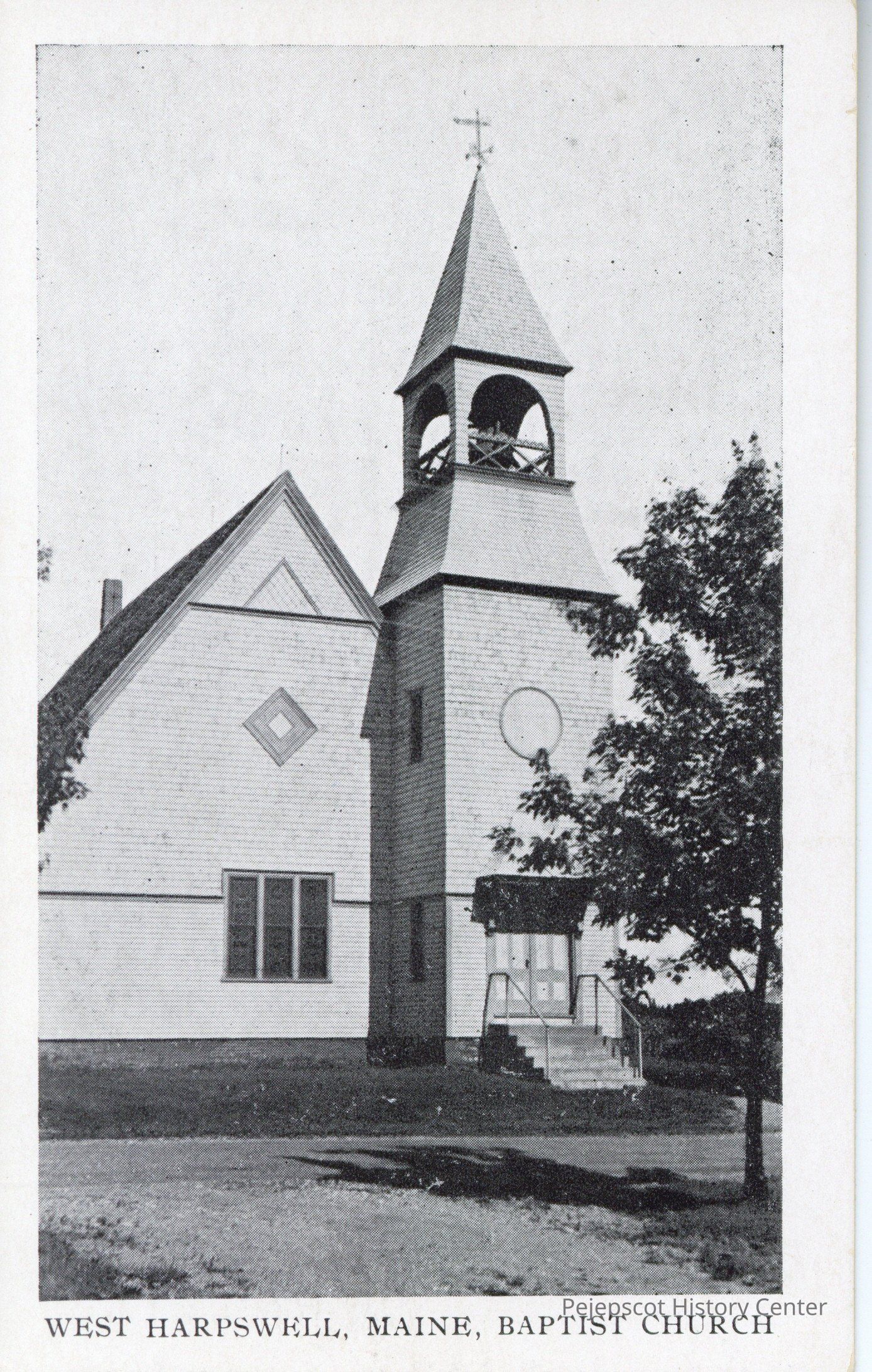 Black and white photo postcard of the Baptist Church, West Harpswell, Maine.Collection