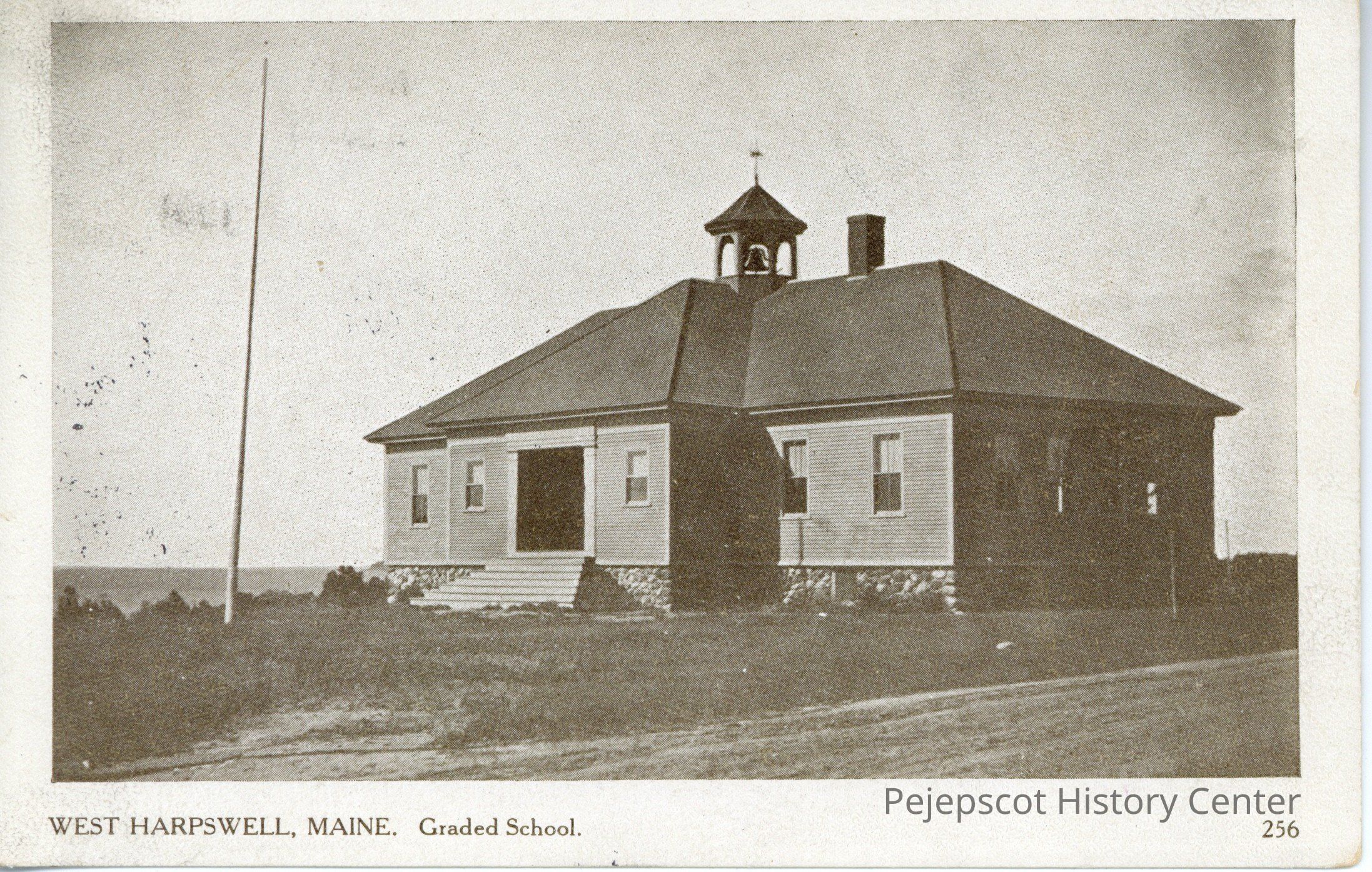 Black and white photo postcard of Graded School building, West Harpswell, Maine.Collection