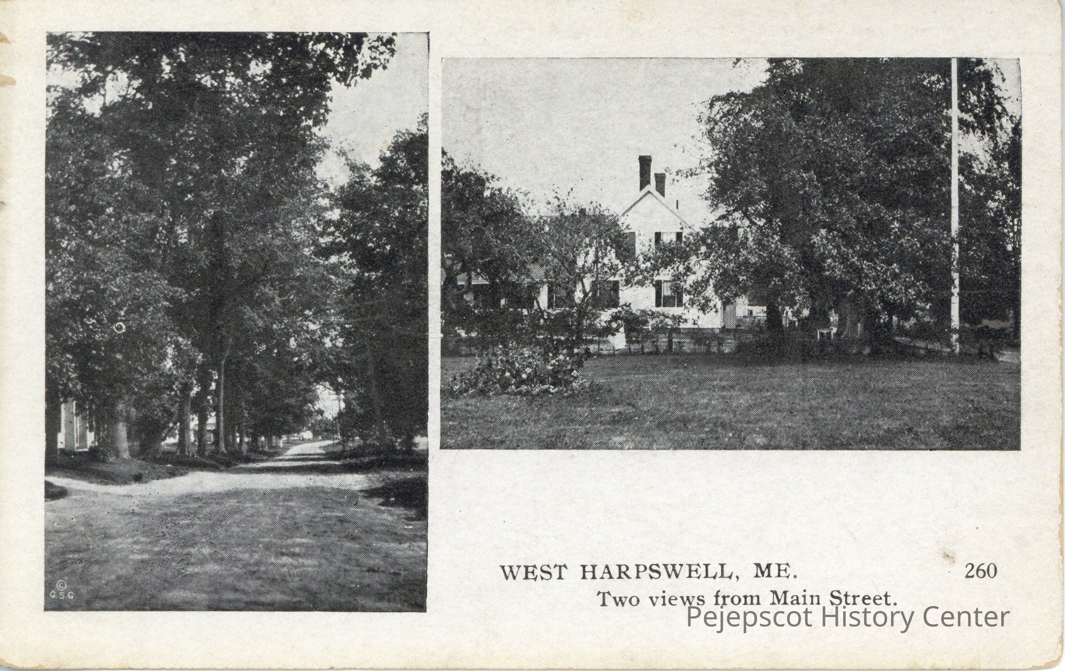 Black and white photo postcard of two views from Main Street, West Harpswell, Me.Collection