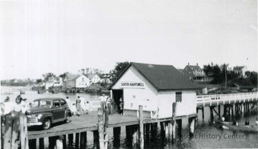 A B/W photograph of the wharf at the end of South Harpswell, Maine. Undated.