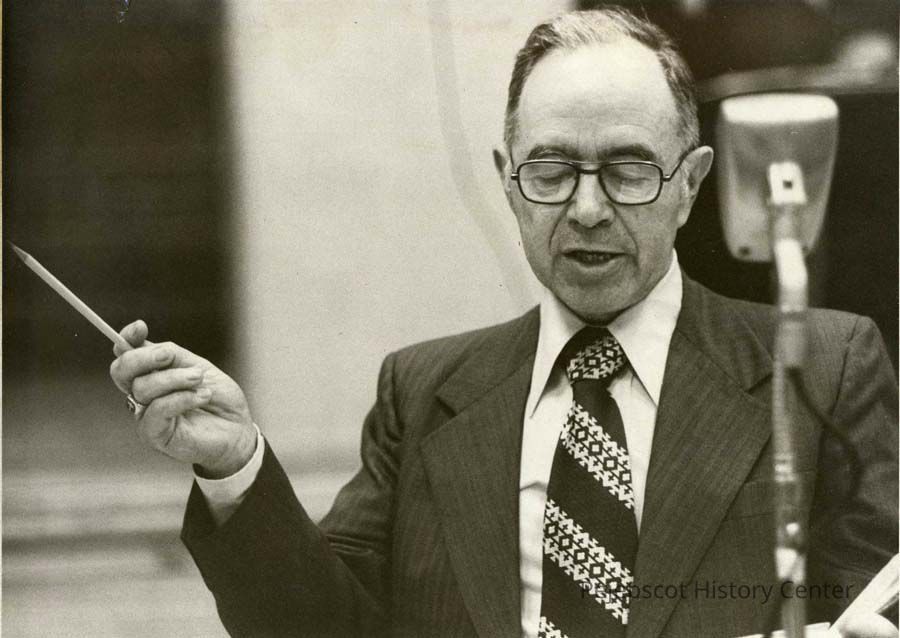 An undated black and white photo of William E. Greig, who was retiring as first selectman of Topsham, Maine. Similar to 2003.546.3.202.