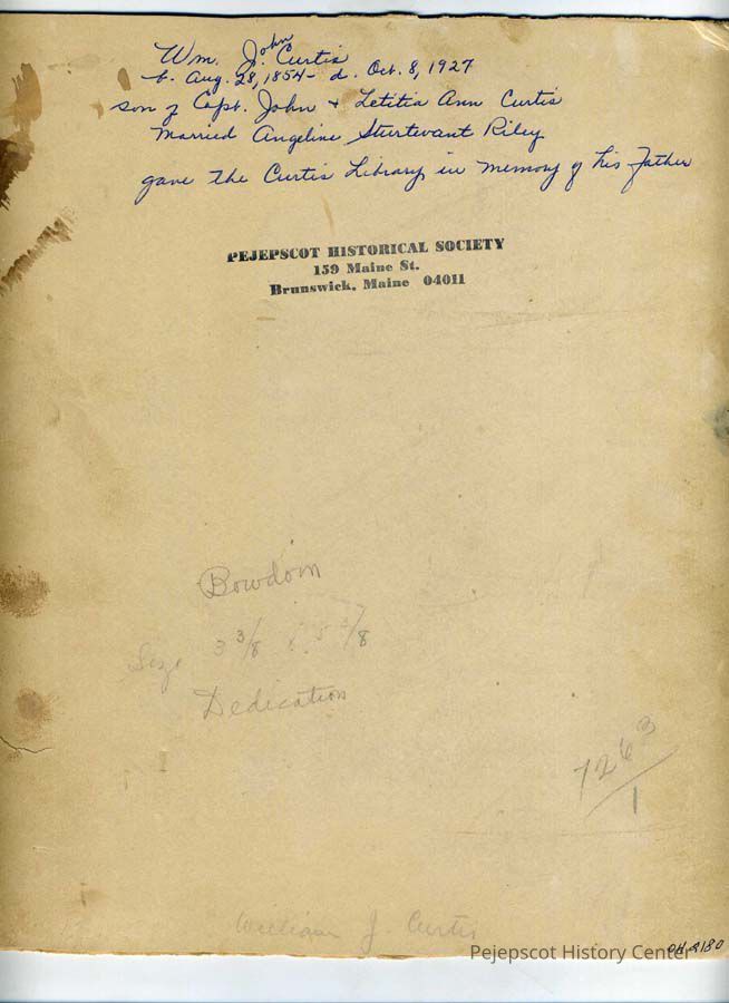 A B/W photograph of William John Curtis. He donated the Curtis Library to the Town of Brunswick, ME