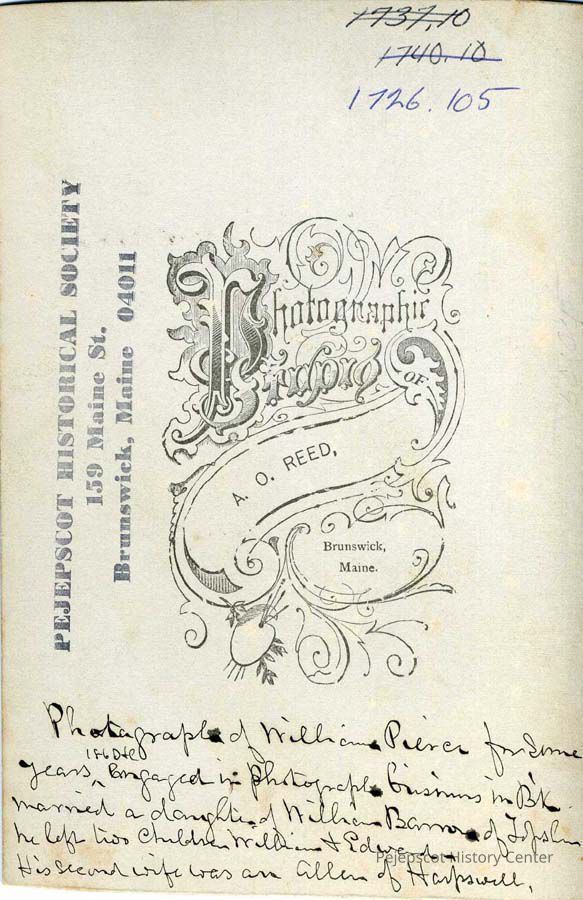 A B/W photograph of William Pierce. He was in the photography business in the 1860s. Not dated.