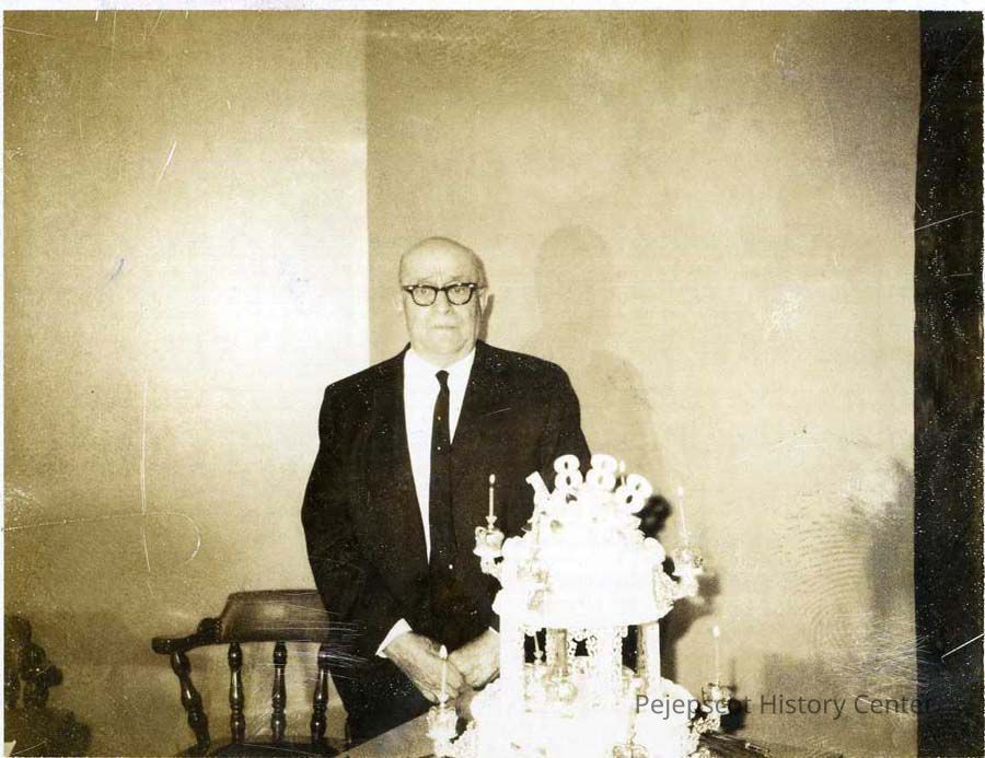 A black and white photo of Willie Brillant of Topsham Heights was taken at his 80th birthday party, attended by 52 relatives, on 11-24-1968. His grandson, Norman Brillant, made the cake. The photo was published in The Bath-Brunswick Times Record in Brunswick, Maine, on 11/26/1968.Collection