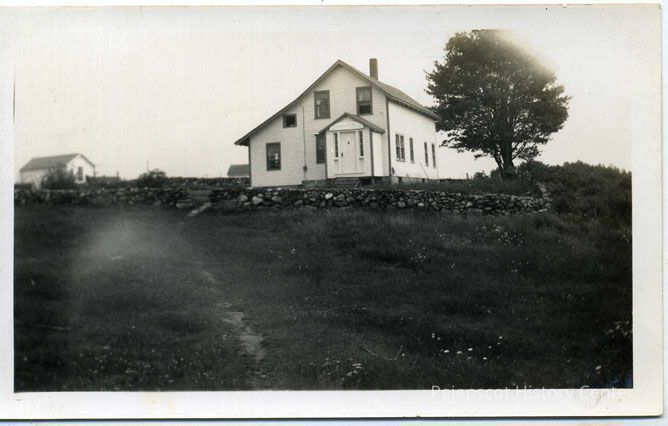 An undated black and white photograph of Windjammer Cottage, home of Miriam Stover Thomas, South Harpswell, Maine.