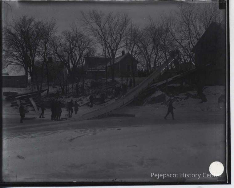 Photo of a winter slide near Water Street, Brunswick, Maine.
