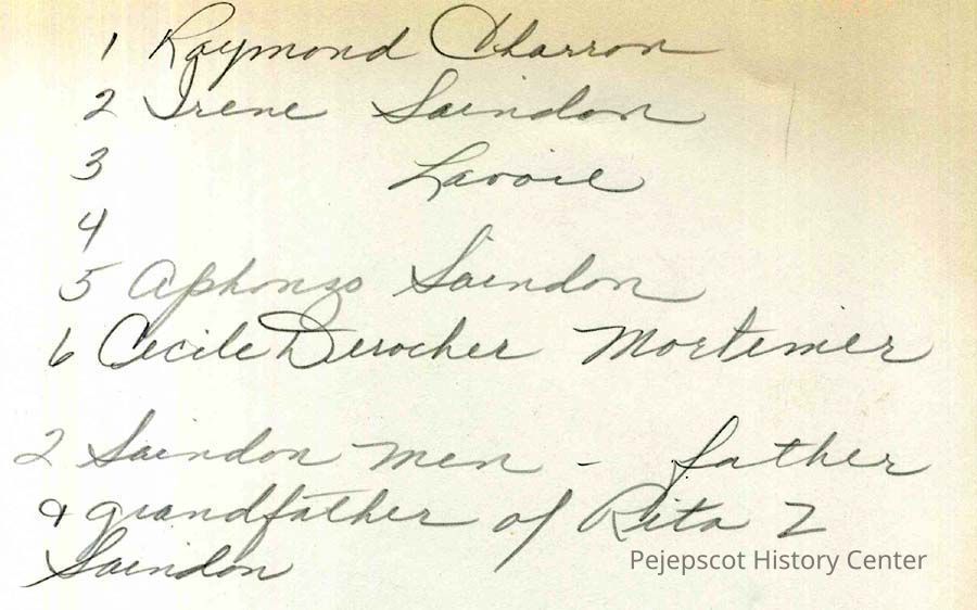 A B/W photograph of picture in a magazine showing one of the rooms in the Cabot Mill, Brunswick, Maine. The people are Raymond Charron, Irenie Saindon ____ Lavoie and Cecile Derocher Mortimer. Undated.Collection