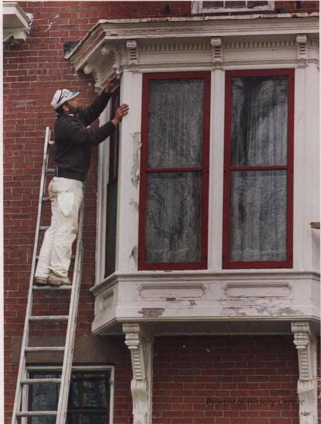 Workman Preparing to Paint the Skolfield-Whittier House
