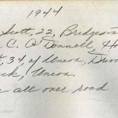This truck was driven by Garnett M. Scott for George C. O'Donnell. There were eggs all over the road. Undated