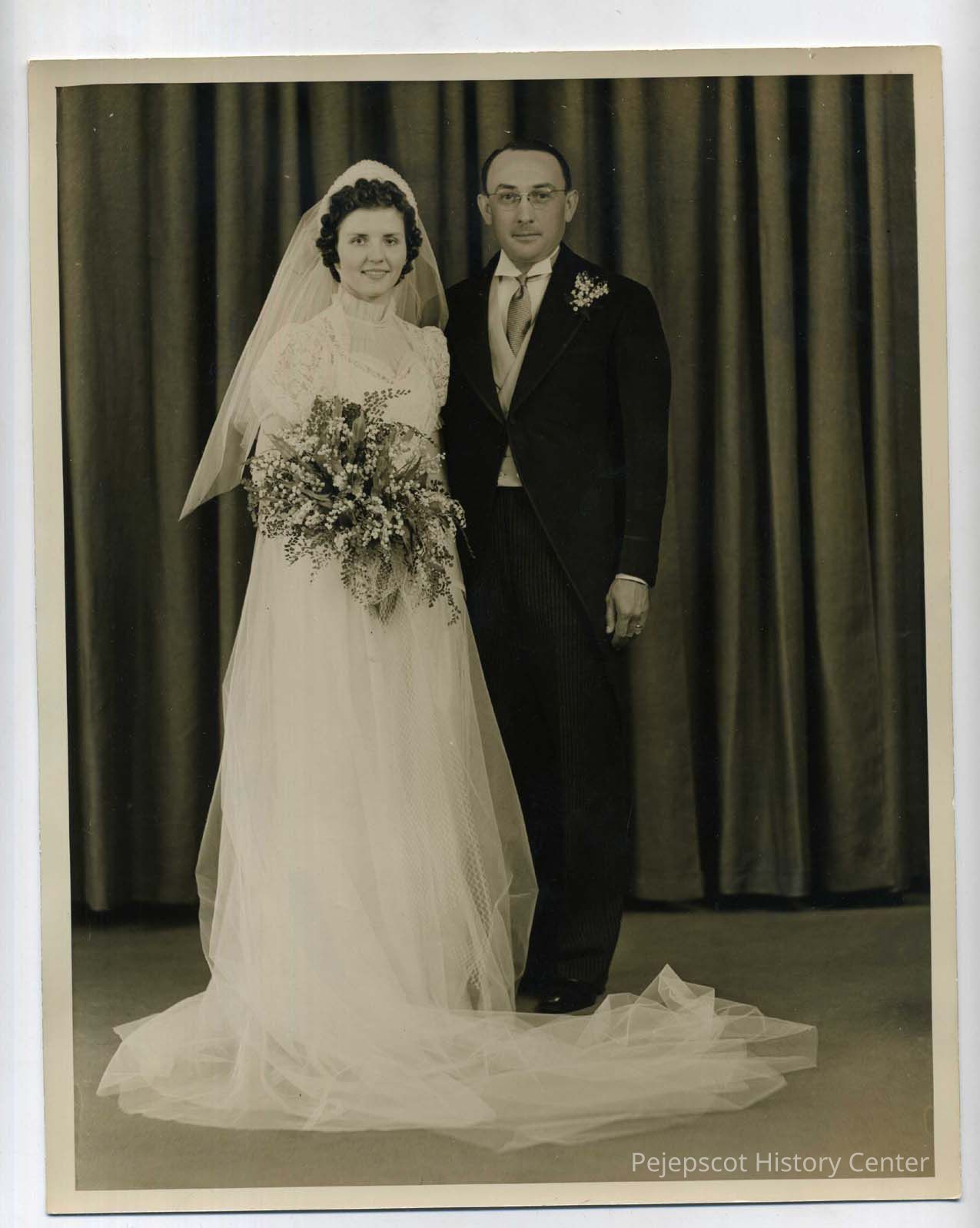 Yvette Picard Small and Charles T. Small as bride and groom. Their wedding took place at St. John's Church on June 5, 1940.