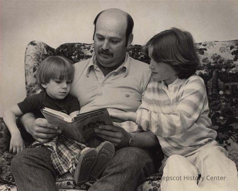 A black and white photo of Zane Campbell with two unidentified children was published in The Times Record in Brunswick, Maine, on 5/26/1982.
