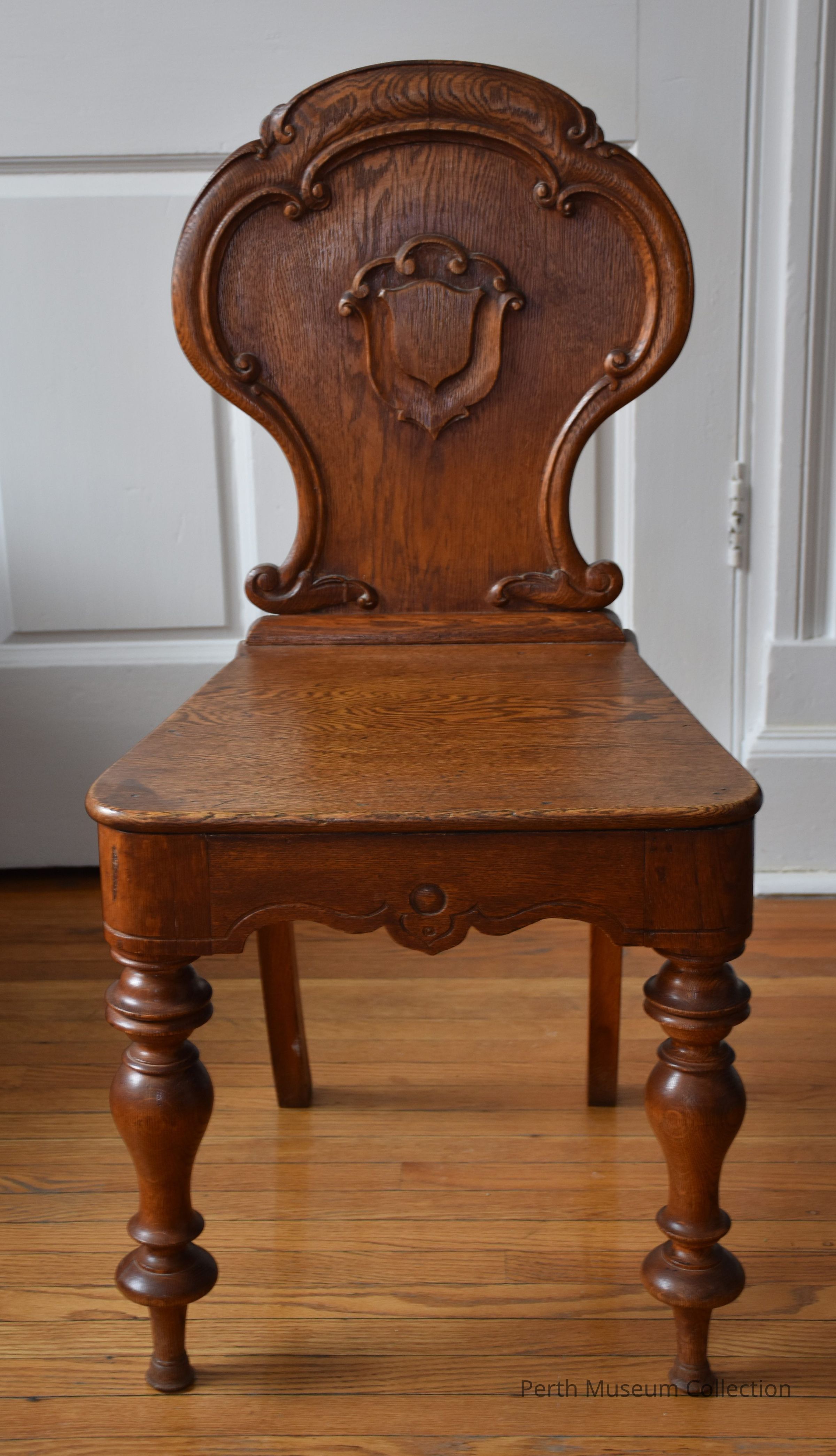 This particular chair belonged to the Matheson family and it was used in the hall of the house when the Mathesons lived here. Circa. 1850-1860Dimensions