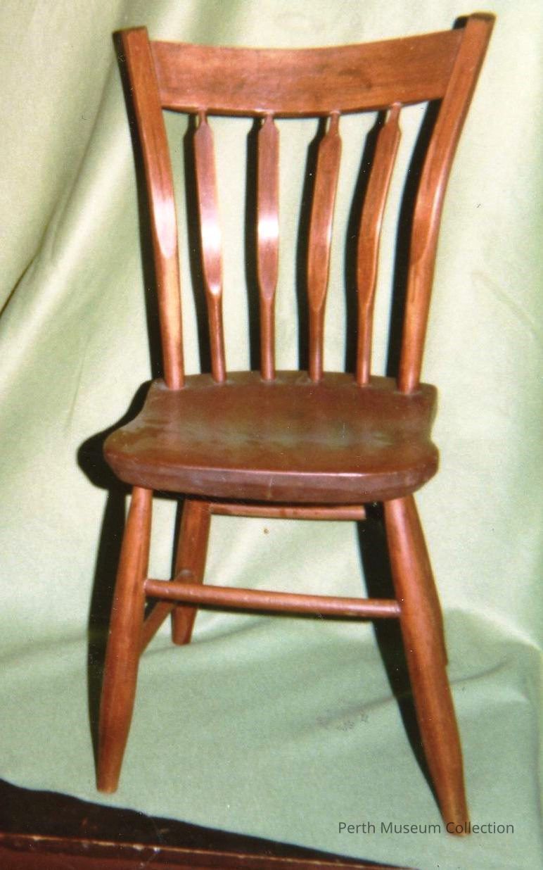 These four original arrow back chairs are in fairly good condition. Some of the red paint remains but most of the chairs have been covered with urethane.