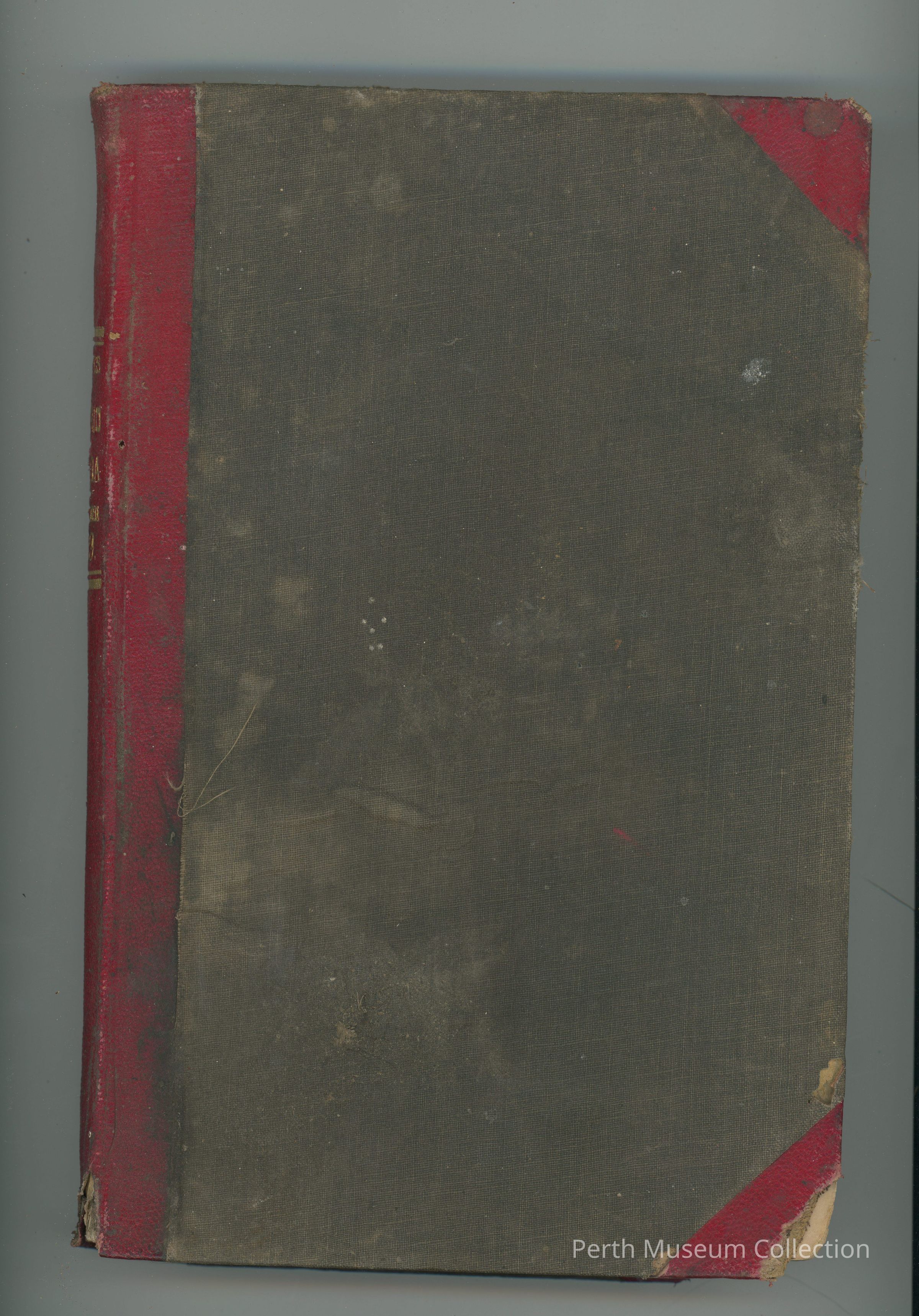 002.030.010- Book- Hardcover- 365 Pages including index- The book is black, faded and stained, it has red corners and a red spine that wraps around on both the left and right side of the book, there is also golden writing on the spine.Dimensions