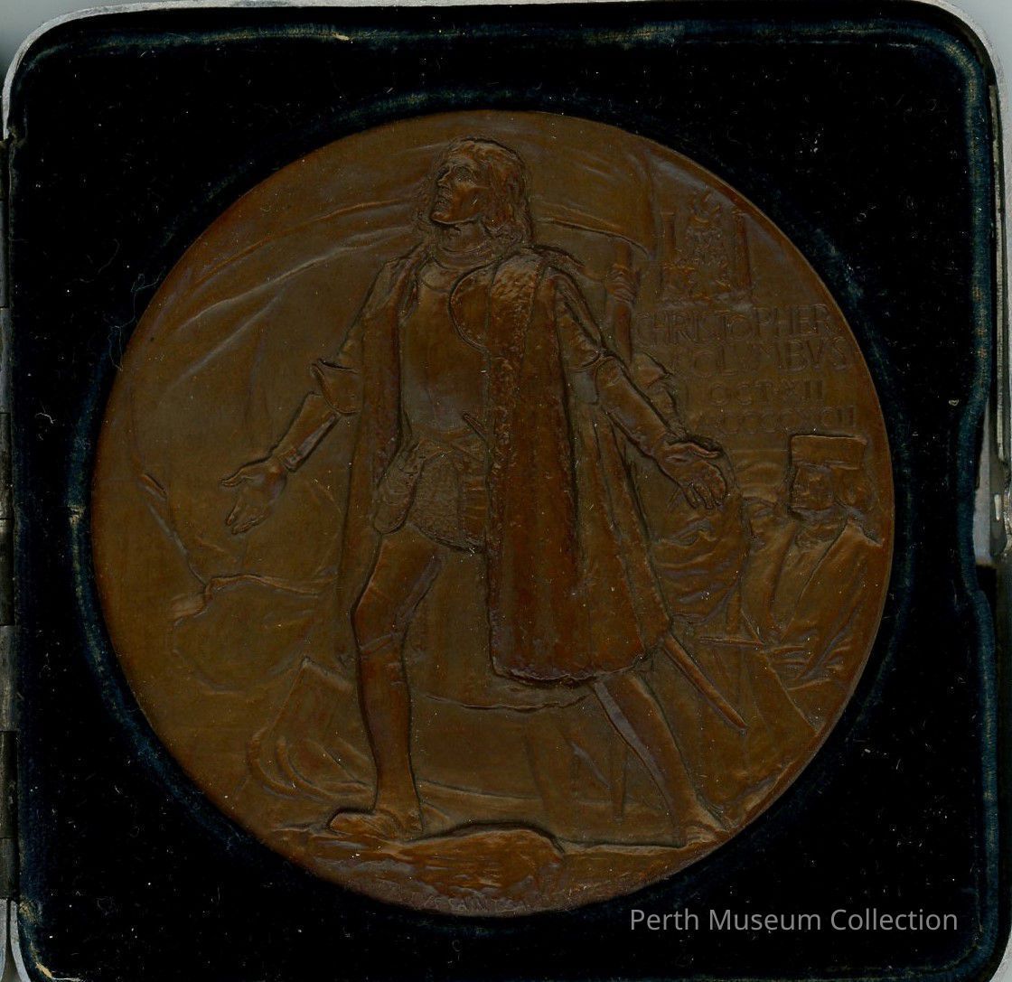 There is a man that has been etched to to bottom - I am guessing that it is suppose to be Columbus.