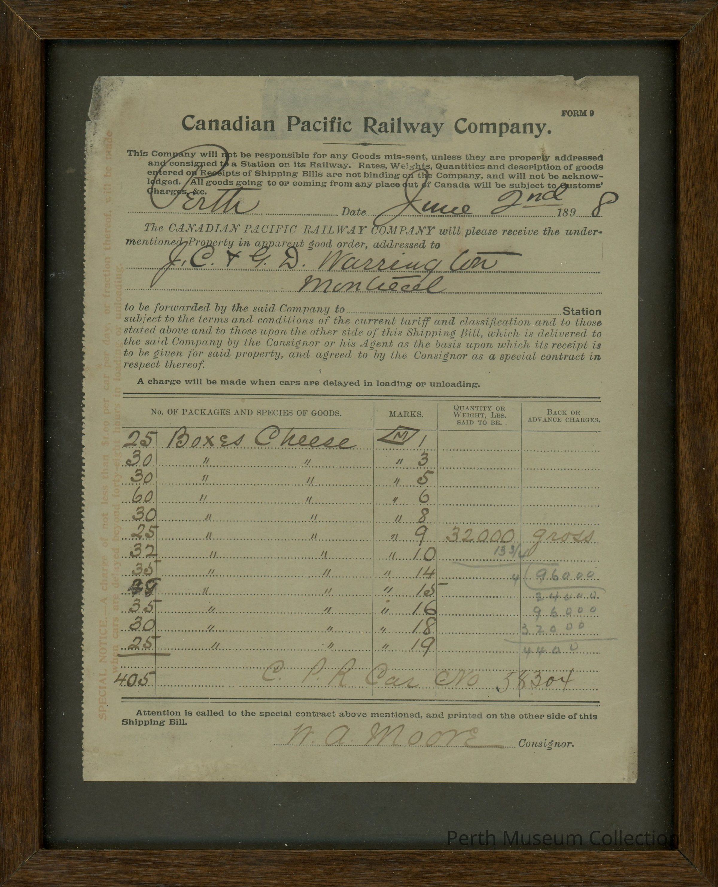 Shipping Bill from the Canadian Pacific Railway Company. Dated at Perth on June 2nd, 1898,