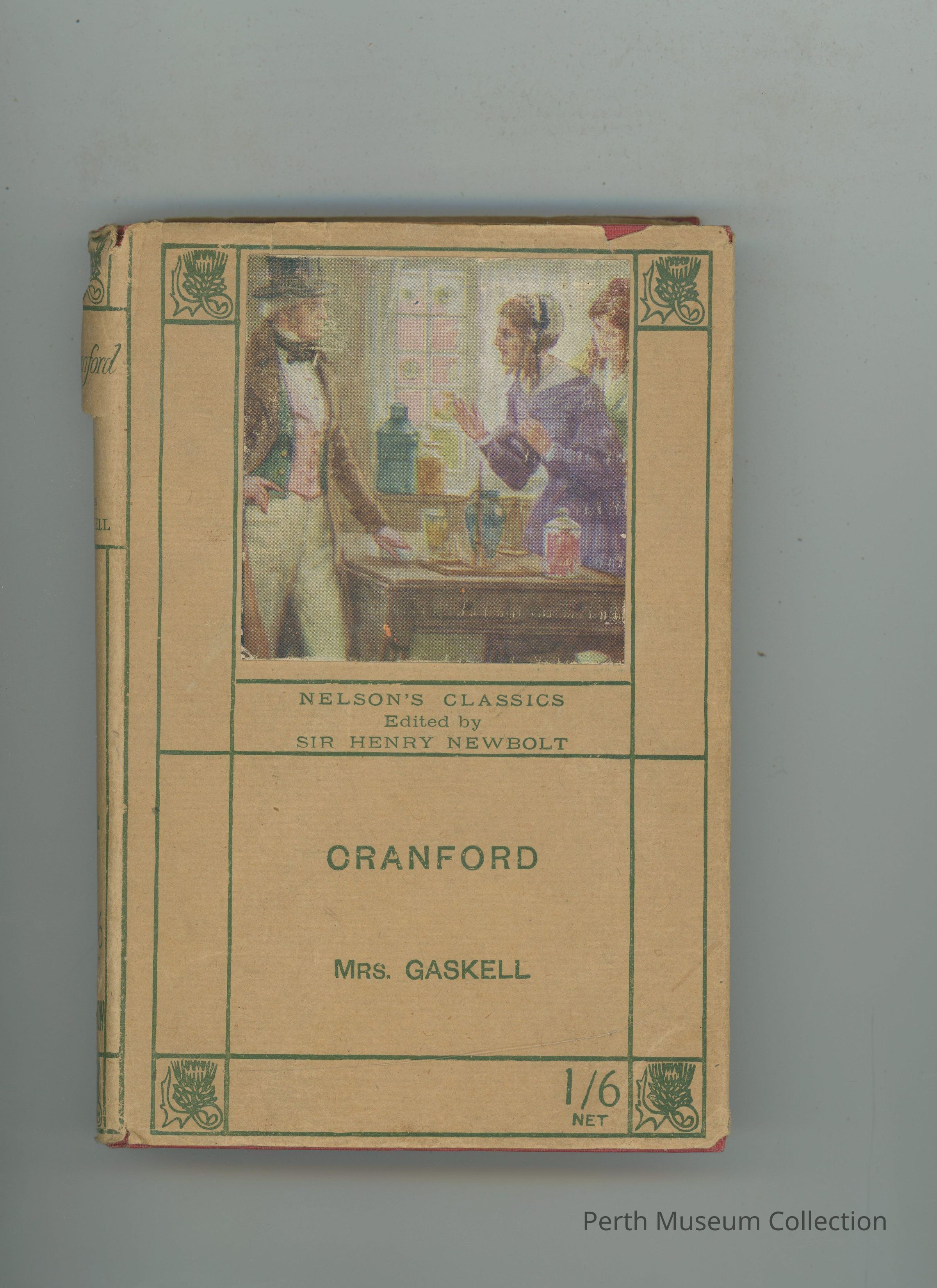 0104b - The paper cover is beige with dark green borders, there is a picture of two women talking to a man over a table. The title, publisher, editor and author are also all printed in the dark green.Dimensions