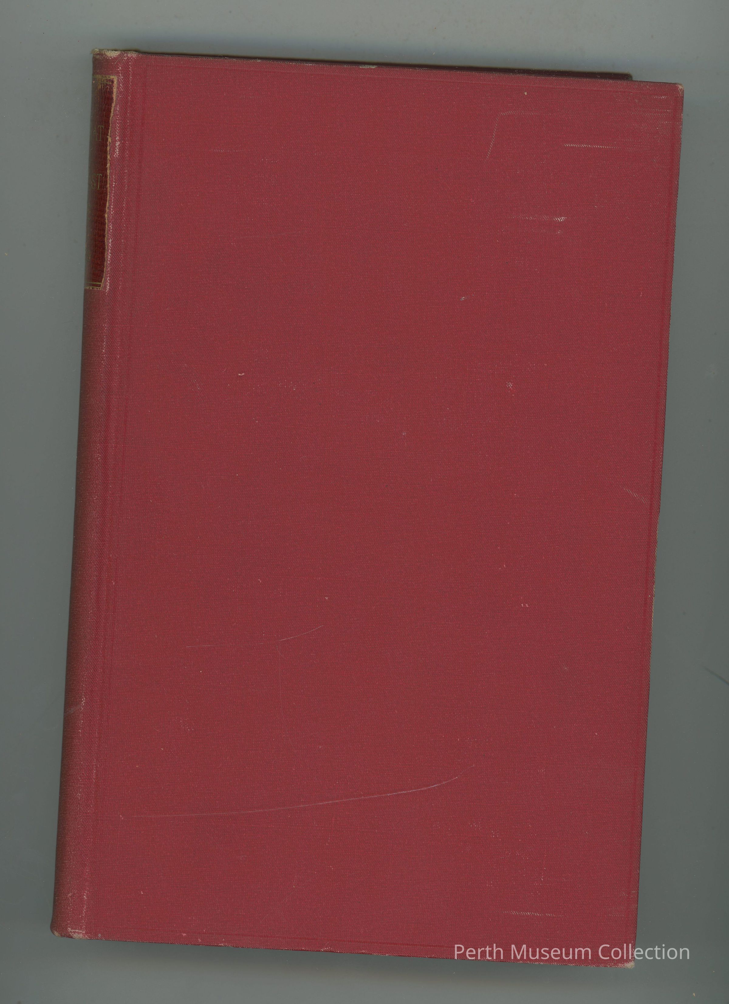 988.60.13 - Hardcover - 321 Pages - The book it red with a border pressed into the front around the edge. The title and author are printed on the spine in gold on a darker shade of red that is bordered in gold as well. Sides of pages are also gold.Dimensions