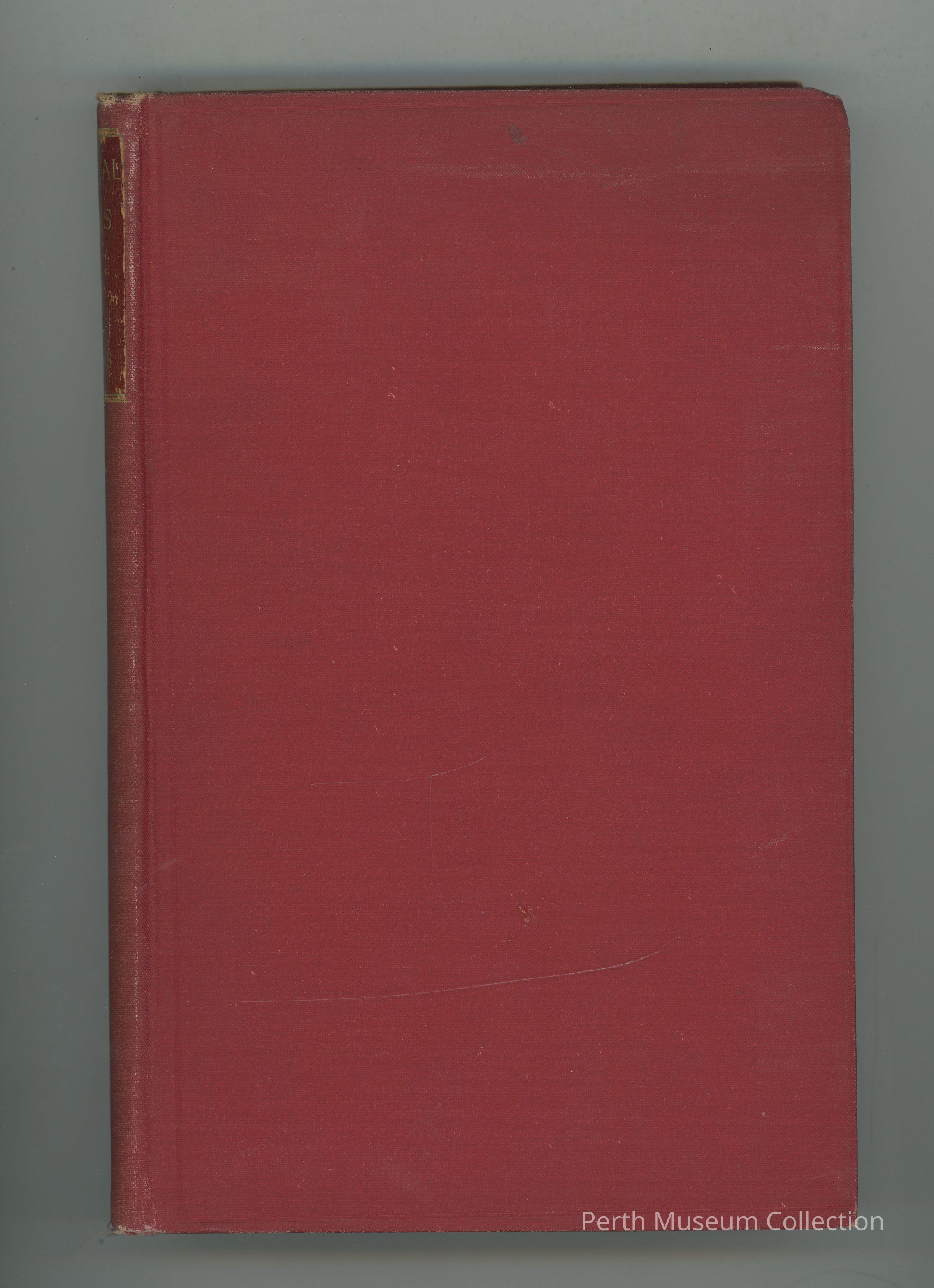 988.60.12 - Hardcover - 294 Pages - The book it red with a border pressed into the front around the edge. The title and author are printed on the spine in gold on a darker shade of red that is bordered in gold as well. Sides of pages are also gold.Dimensions