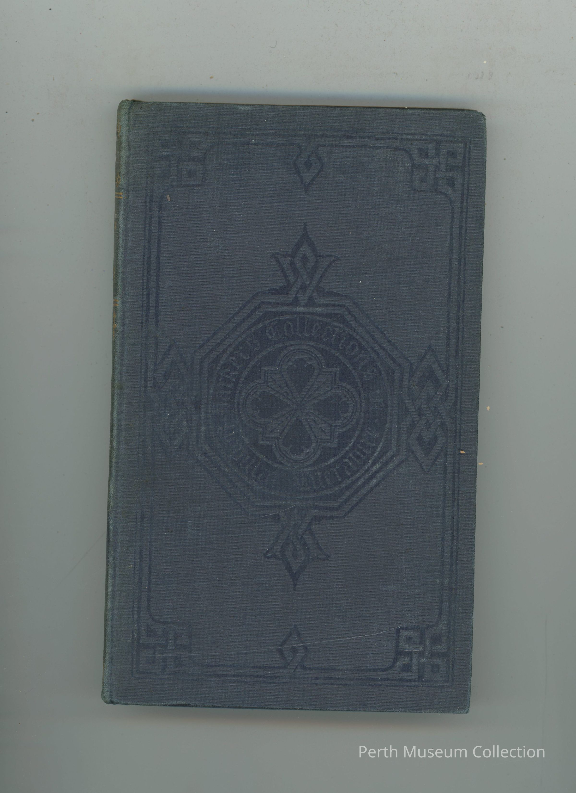 0115 - Hardcover - 203 Pages - The cover is navy blue with designs pressed into the front, there is a symbol is the middle surrounded by the name of the collection of books. The designs border around the entirety of the front and back. The spine has designs printed in gold, as well as the title.Dimensions