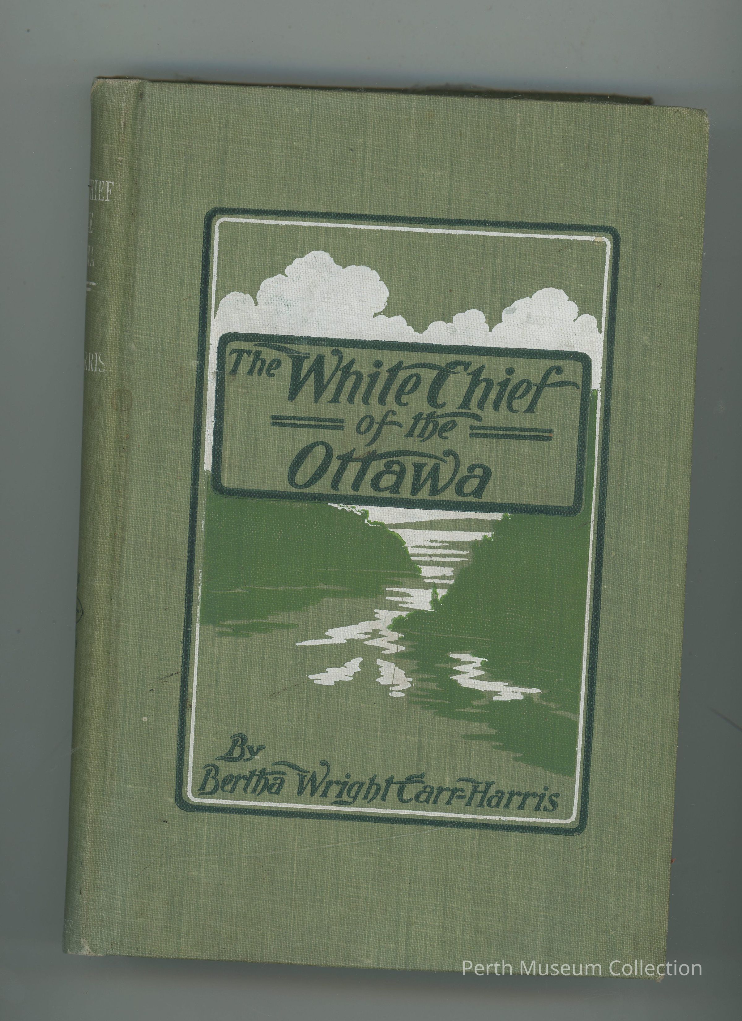 0087 - Hardcover - 252 Pages - The cover is green with a picture in the middle of the front of a river, trees and white clouds. The title, publisher and border is dark green, there is also a white border just around the inside of the dark green one.