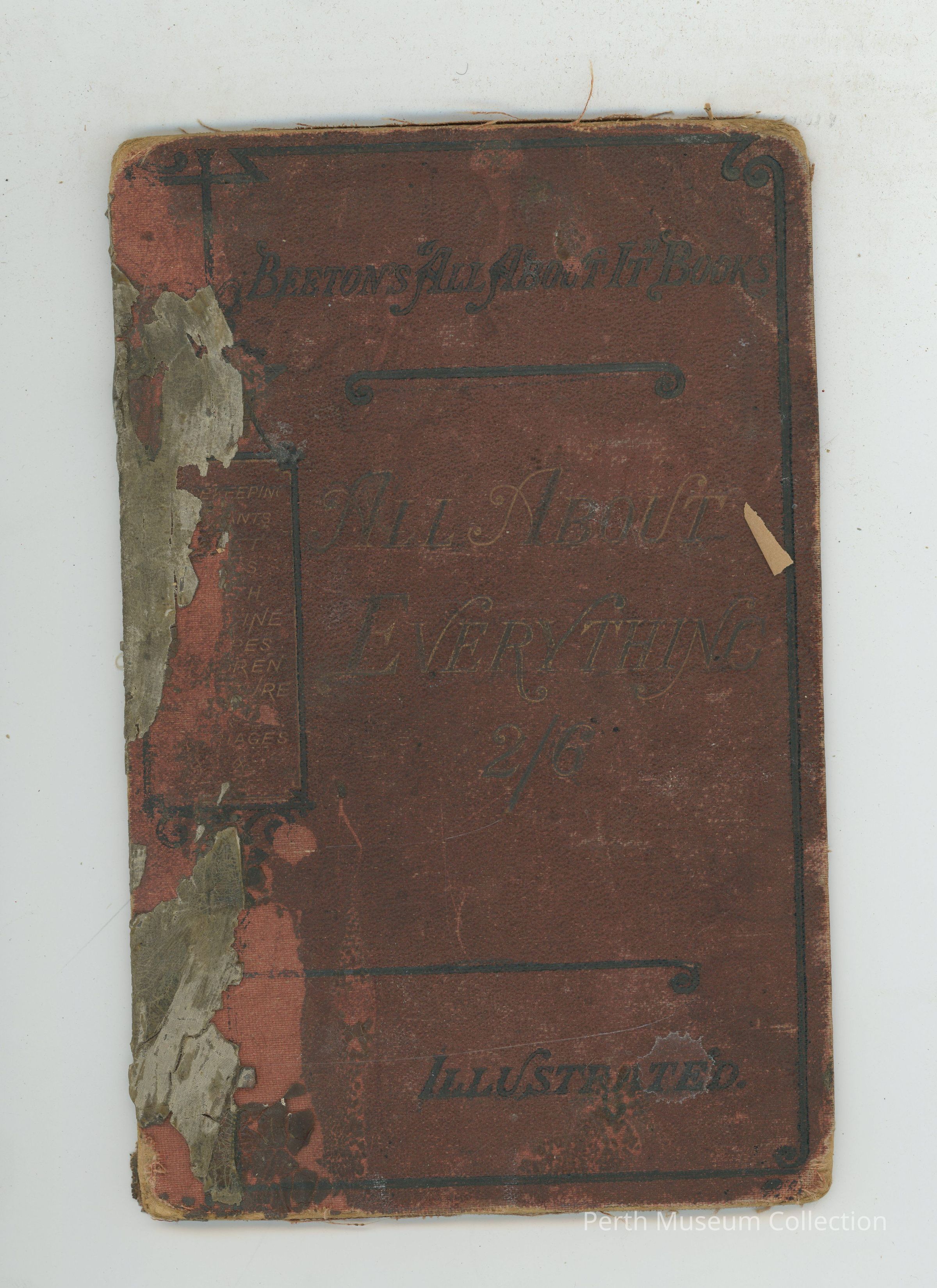 0118 - Hardcover - 379 Pages - The cover is a dark burgundy that is faded and scuffed, the title is printed in black on the front. There is a black border around the edge of the front which is also pressed into it. The spine is completely gone and there is nothing holding the book together. It is also missing its first couple pages.Dimensions