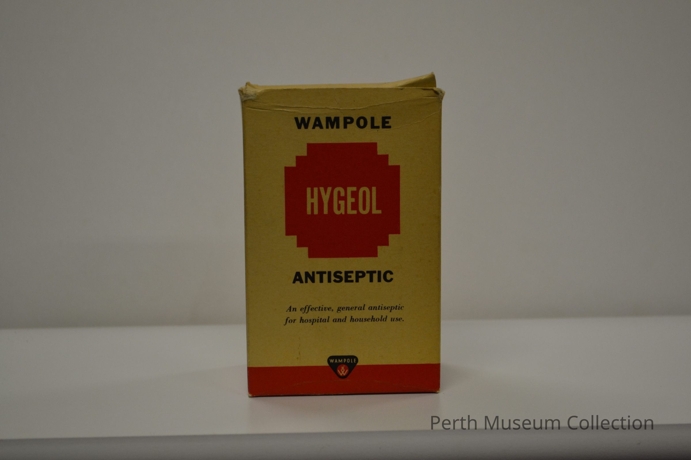 Buff-coloured cardboard box, printed in red and black ink, the front and right panels are in English, the back and left panels are in French.