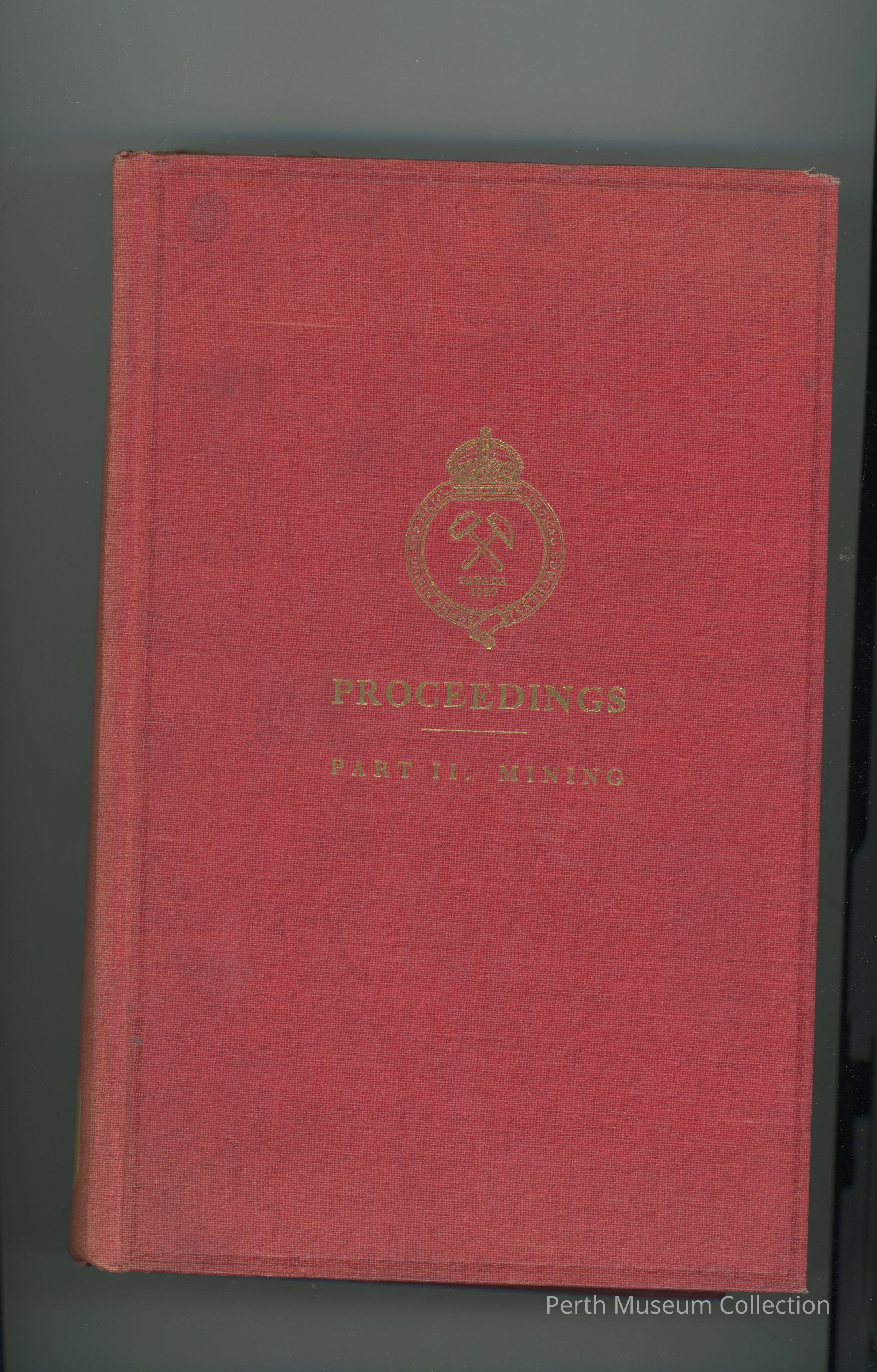 L-NN0005- Book- Hardcover- 270 Pages- The cover of the book is red with golden writing on it, there are some mining tools stamped in gold too and there is a slight stain in the top left corner.Dimensions