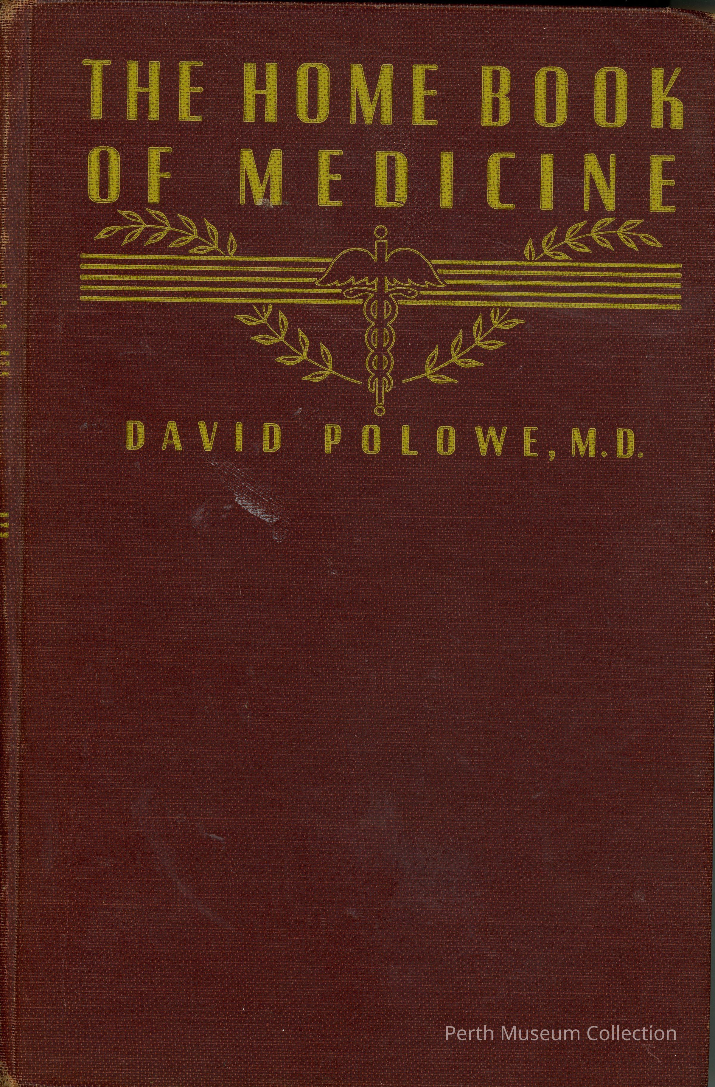 Hardcover. Burgundy with gold lettering and design. There is the symbol of medicine on the front with a strand of leaves 581 pages. Nine parts.