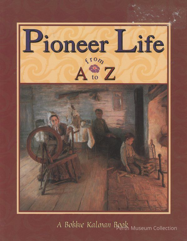 "Pioneer Life from A to Z". This alphabet book introduces various aspects of the pioneer lifestyle in North America, including toys, clothing, school, home crafts and special occasions.