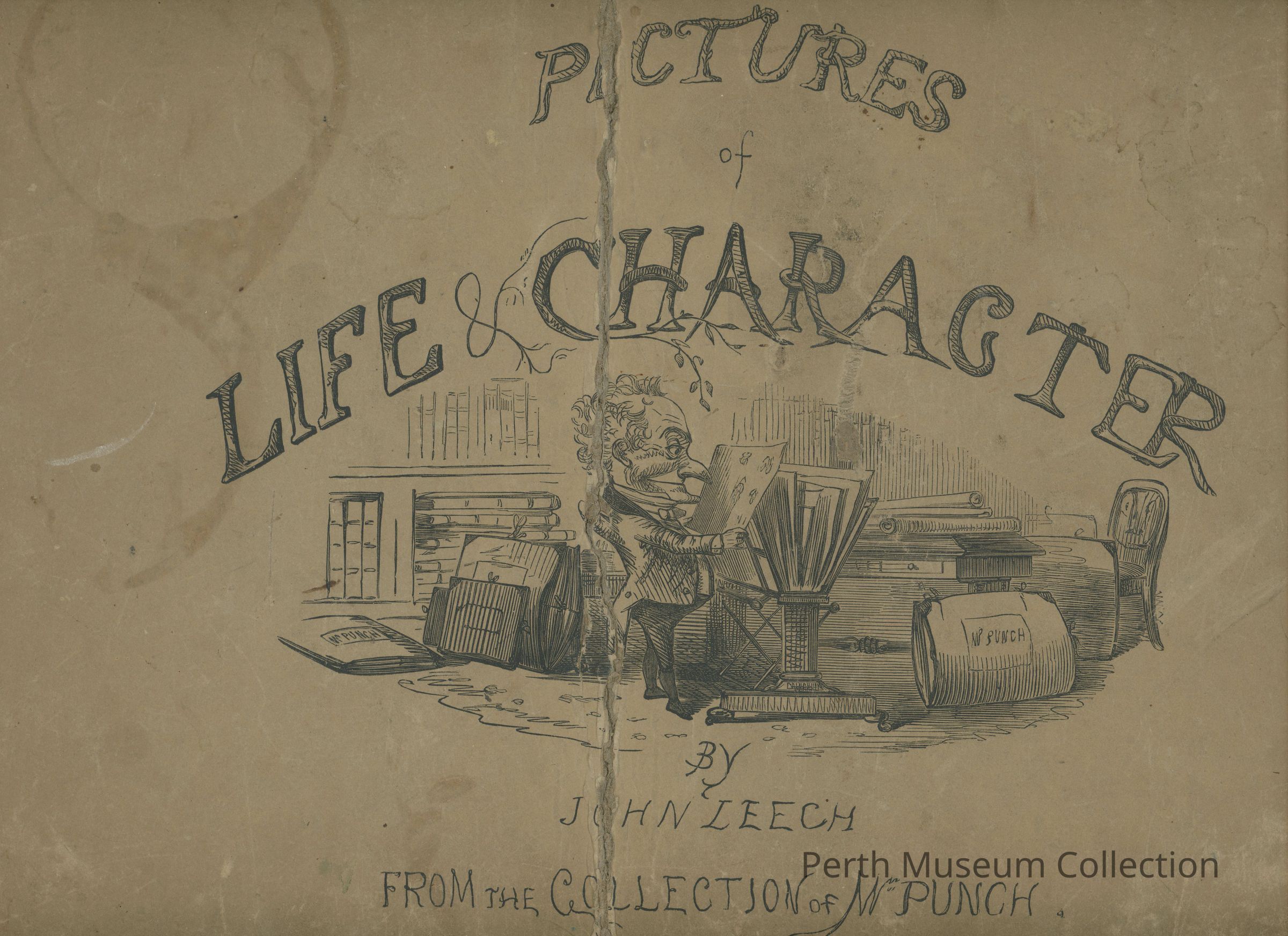007.21.2-Book-Hardcover- 94 Pages- The front of the book is beige with dark brown corners, the parts of the spine that are left are the same dark brown colour, it also has a large circular stain on it. It has a little man with a large nose reading on it who is also surrounded by books.Dimensions