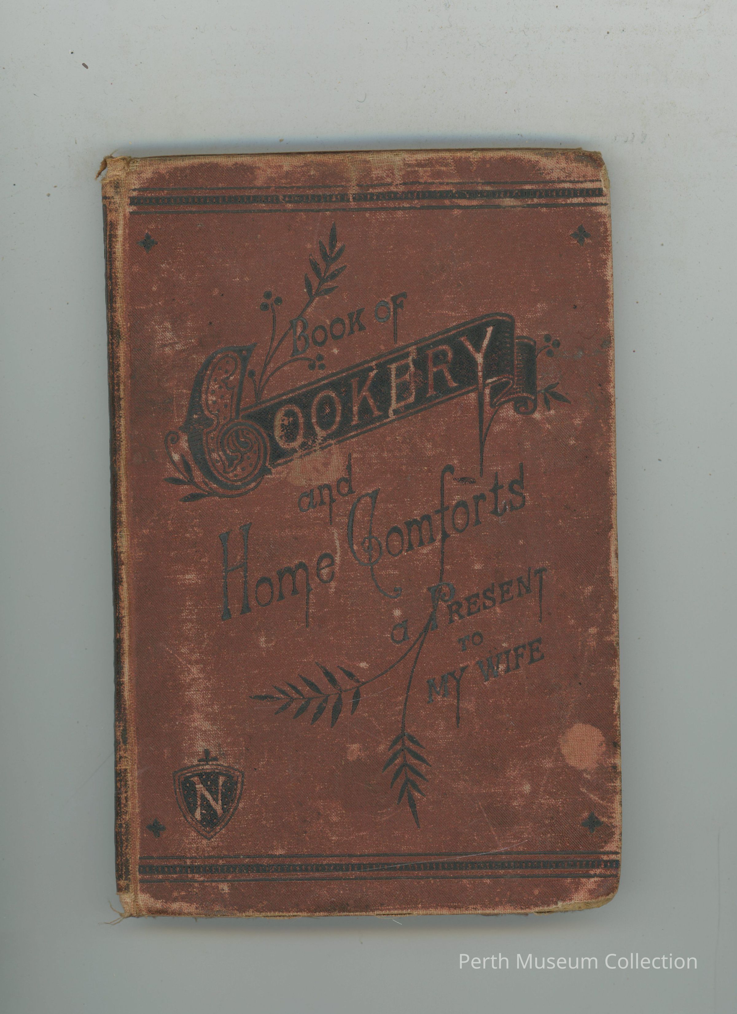 877.10.05 - Hardcover - 144 Pages - The cover is a faded red/brown colour, with the title printed in black. There are vines printed on the title, and a symbol with a "N" in the bottom left corner of the front, and there is a lined border on the top and bottom of the book. There is text on the spine of the book, the same colour as the book that is incased in black.Dimensions