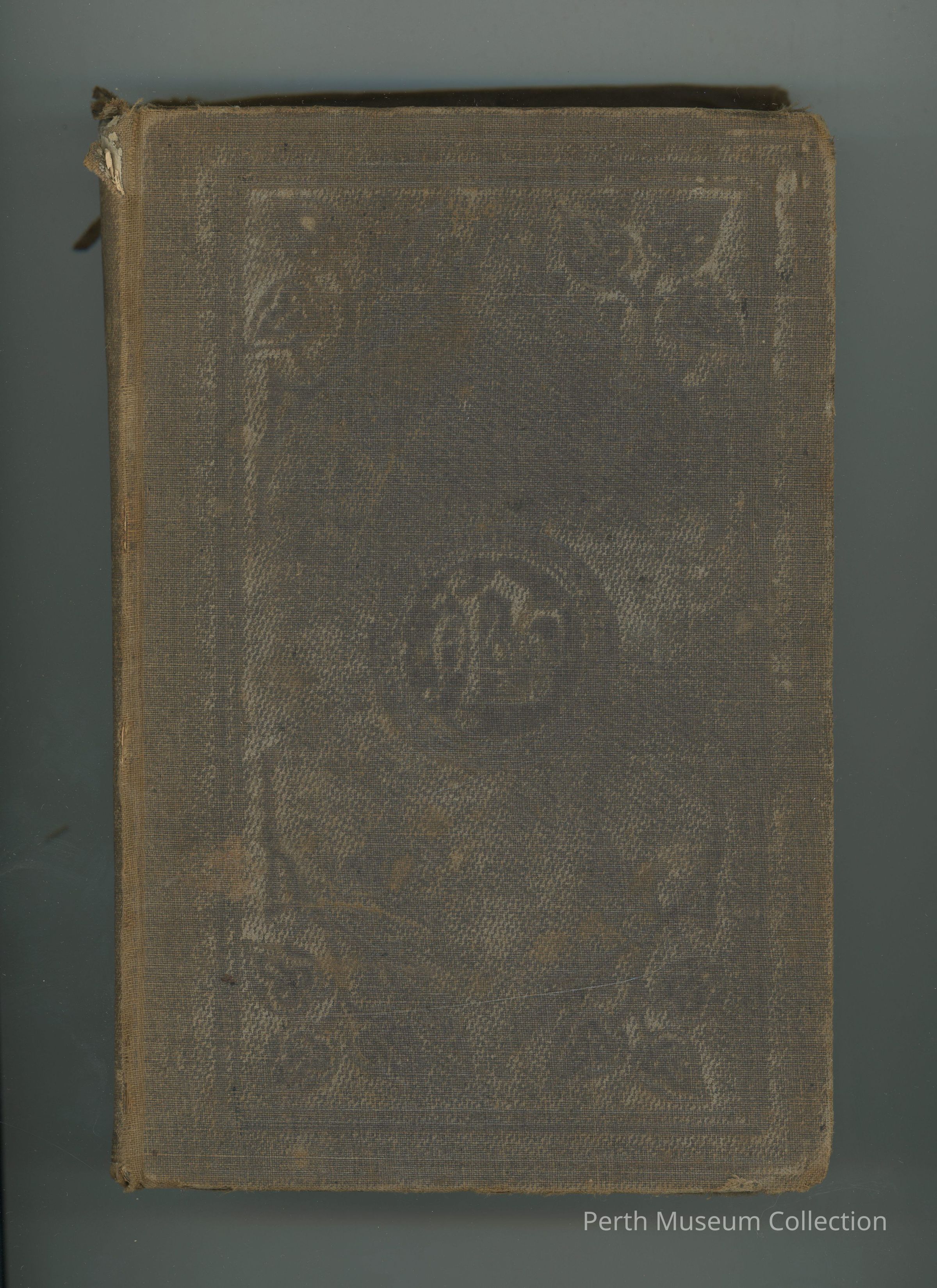 005.27.18 - Hardcover - 607 Pages - It has a dark brown cover with flower pattern pressed into it (faded).The spine is ripped at top and bottom with title and author on it.Dimensions