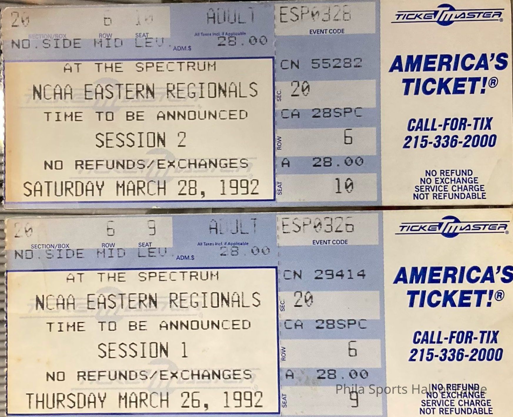 1992 NCAA Eastern Regional ticketsEntry/Object ID