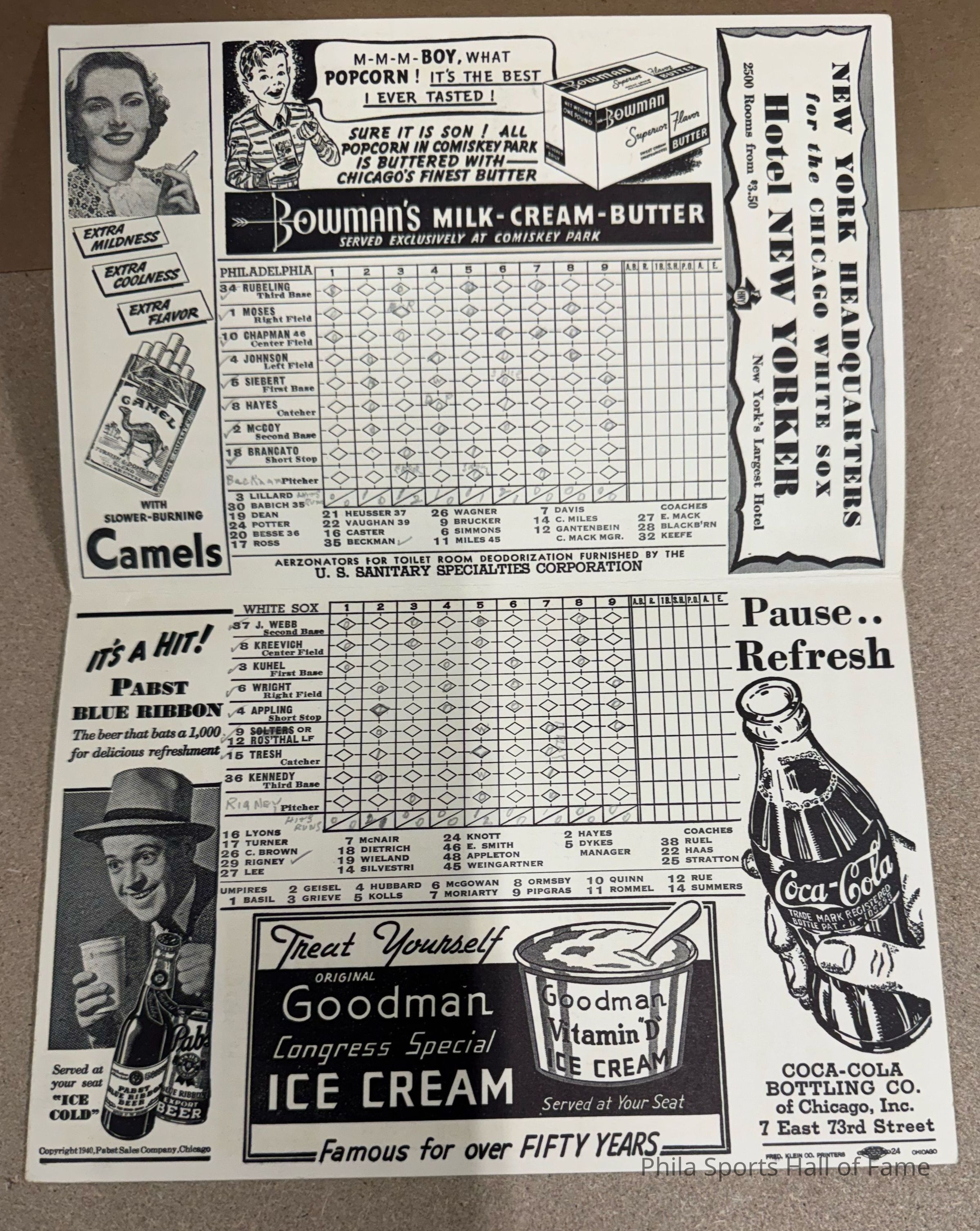 1940 Whitesox scorecard signed by Connie Mack & Monty Stratton