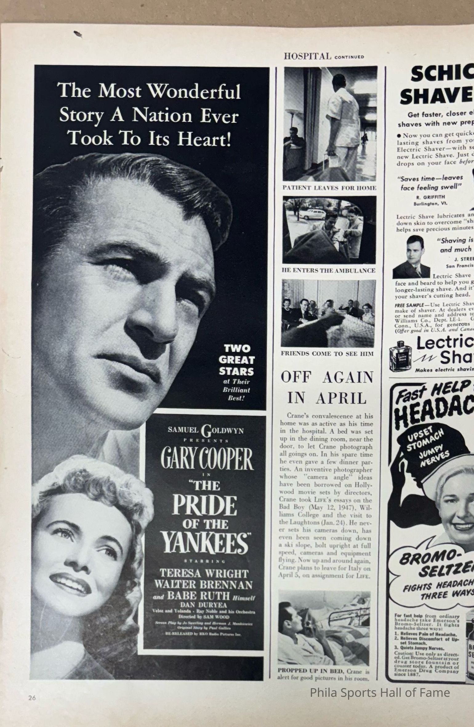 1942 Pride of the Yankees magazine ad